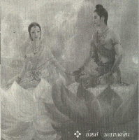 เทพบุตรกำลังเตรียมการสนานพระสรีรกายในครั้งสุดท้าย กล่าวคือโปรยละอองเกสรดอกไม้ลงมา