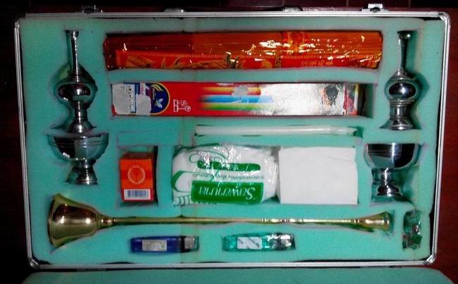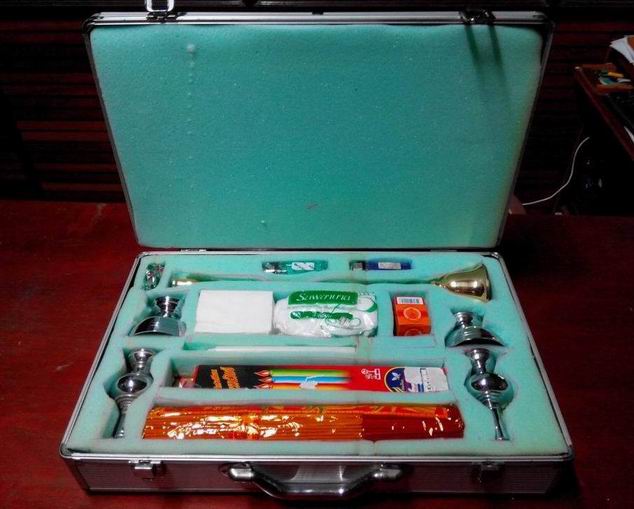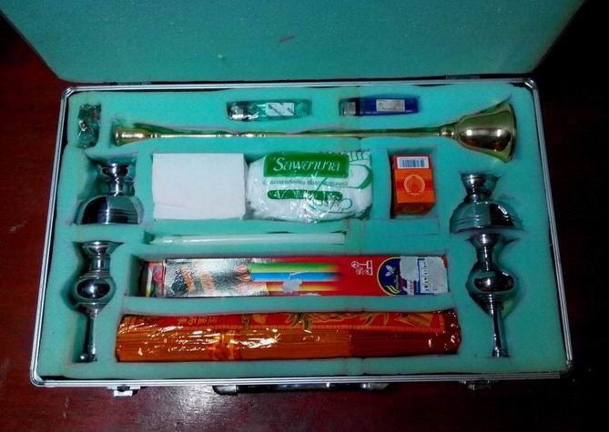 จำนวนตามที่เราต้องการ สำหรับใส่อุปกรณ์ต่าง ๆ) โดยภายในกระเป๋าบรรจุสิ่งที่จำเป็นสำหรับศาสนพิธีกรในการใช้ในการประกอบพิธี