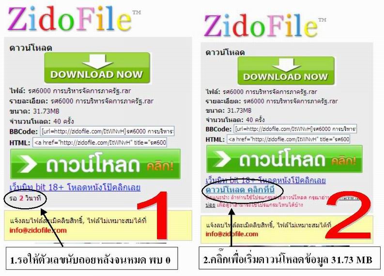 และเอกสารจากเว็บที่ให้บริการฝากไฟล์เอกสาร ข้อมูล webmaster จึงนำภาพตัวอย่างขั้นตอนการดาวน์โหลดมาให้ชม