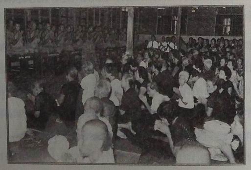ทำกันครึกครื้นถึงแห่แหนสนุกสนานประกวดประชันกันพอถึงวัดแล้วก็ประชุมถวายอุทิศต่อหน้าพระสงฆ์เช่นนี้ก็มี