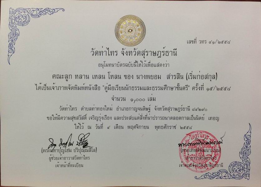 วัดท่าไทร จ.สุราษฎร์ธานี(พิมพ์ครั้งที่ ๑๕/๒๕๕๘), โรงพิมพ์รัตนศิลป์การพิมพ์,
