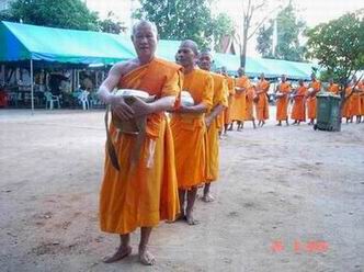 พระสงฆ์จำนวนมากกว่าอายุกำลังรอรับบิณฑบาต