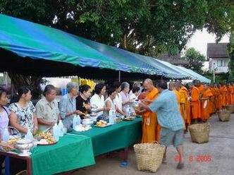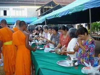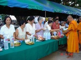 ส่วนหนึ่งของญาติโยมศิษยานุศิษย์กำลังทำบุญใส่บาตร