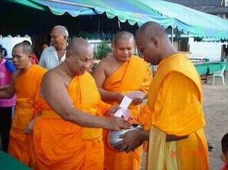ศิษยานุศิษย์กำลังทำบุญใส่บาตรพระภิกษุสามเณร