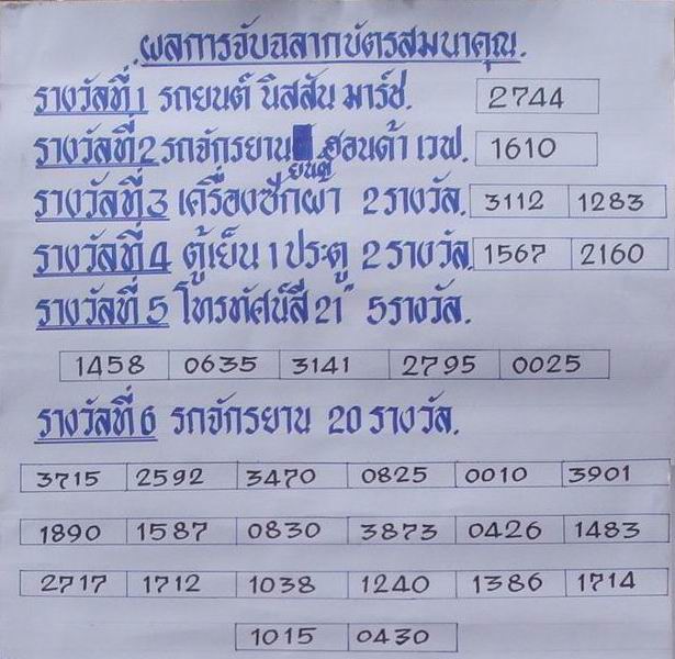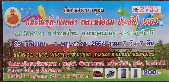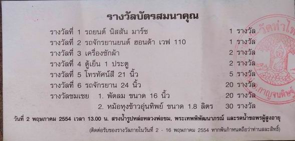 คณะศิษยานุศิษย์วัดท่าไทรในฐานะผู้ดำเนินการ ได้โทรศัพท์ให้ผู้ได้รับรางวัลมารับของรางวัลไปเป็นที่เรียบร้อยแล้ว)