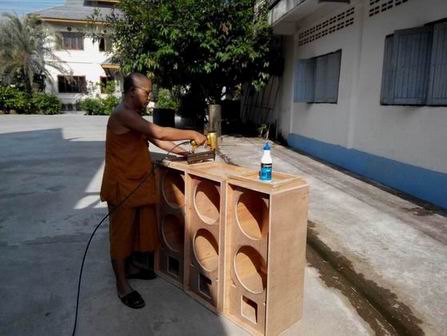 จึงเริ่มลงมือ "ต่อลำโพงเสียงกลาง-แหลม ขนาด 12X2 ไว้ใช้ในศาสนกิจ