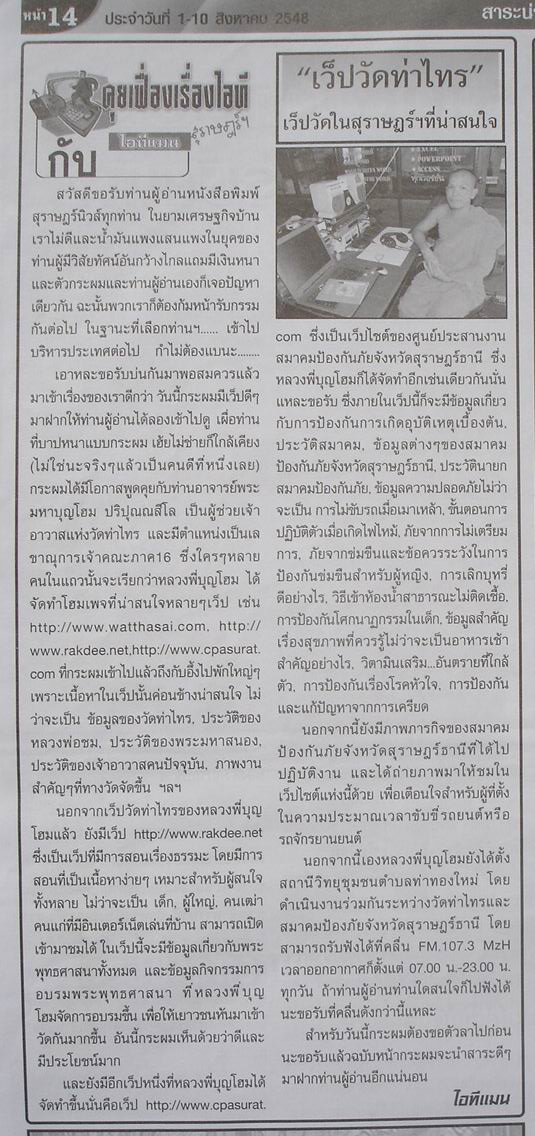 นสพ.สุราษฎร์นิวส์ ที่ให้เกียรติแก่วัดท่าไทรของเรา